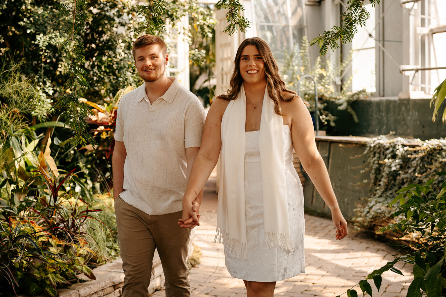 These two wandered through winding paths, getting lost in the tropical foliage and in each other. The conservatory's Palm House provided that perfect blend of dramatic architecture and organic beauty – towering palms overhead, vibrant greenery all around, and soft natural light that made every moment feel like a daydream.